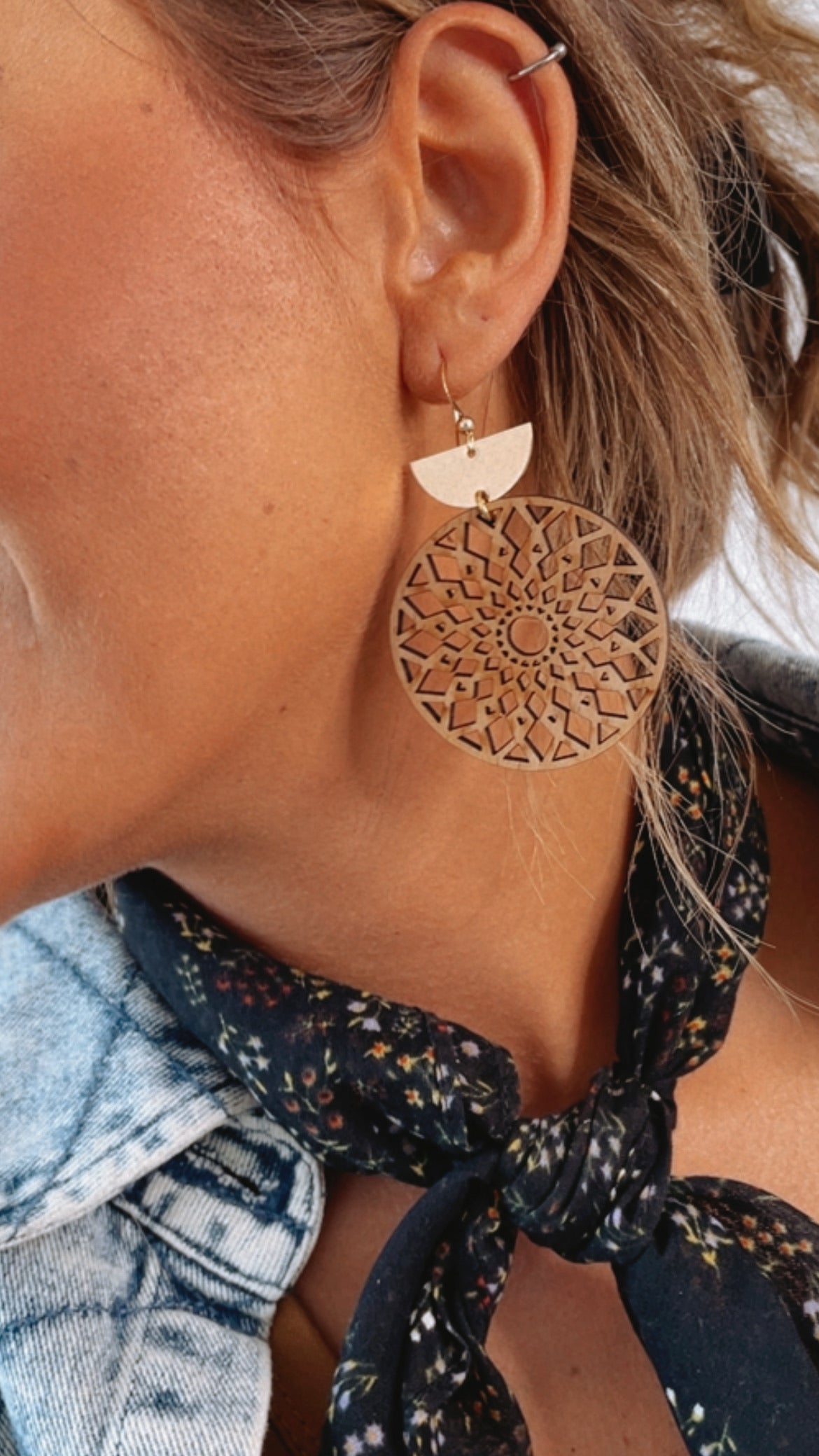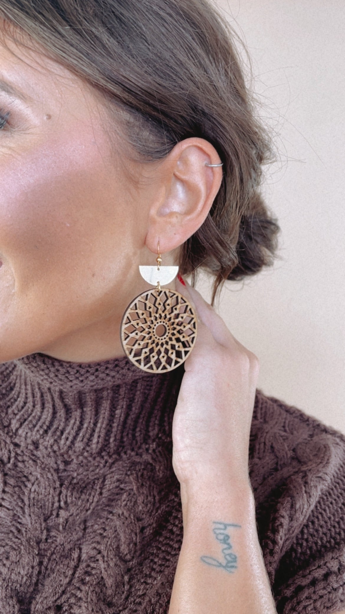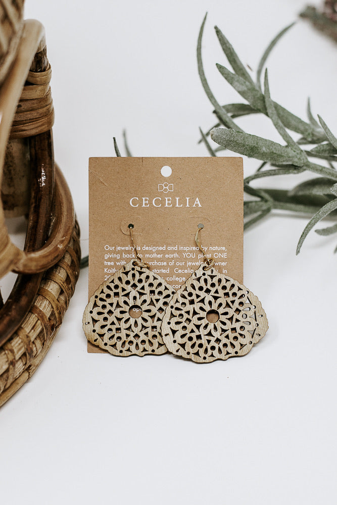 Cecelia Mandala Tiered Earring, Wood