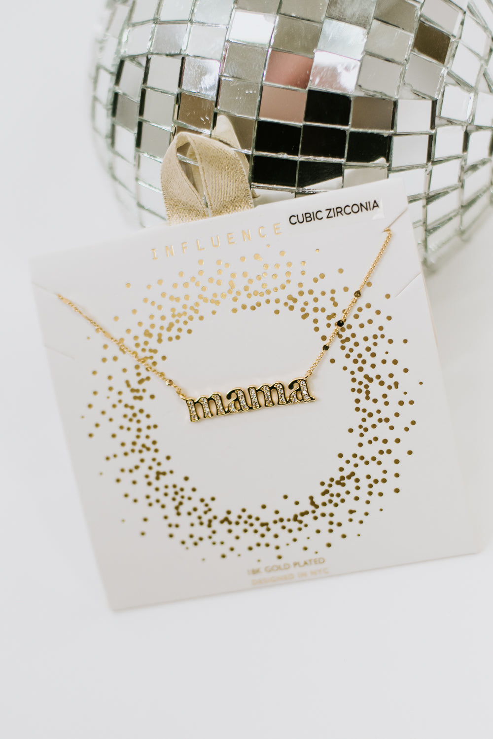 Carded Mama Script Necklace, Gold