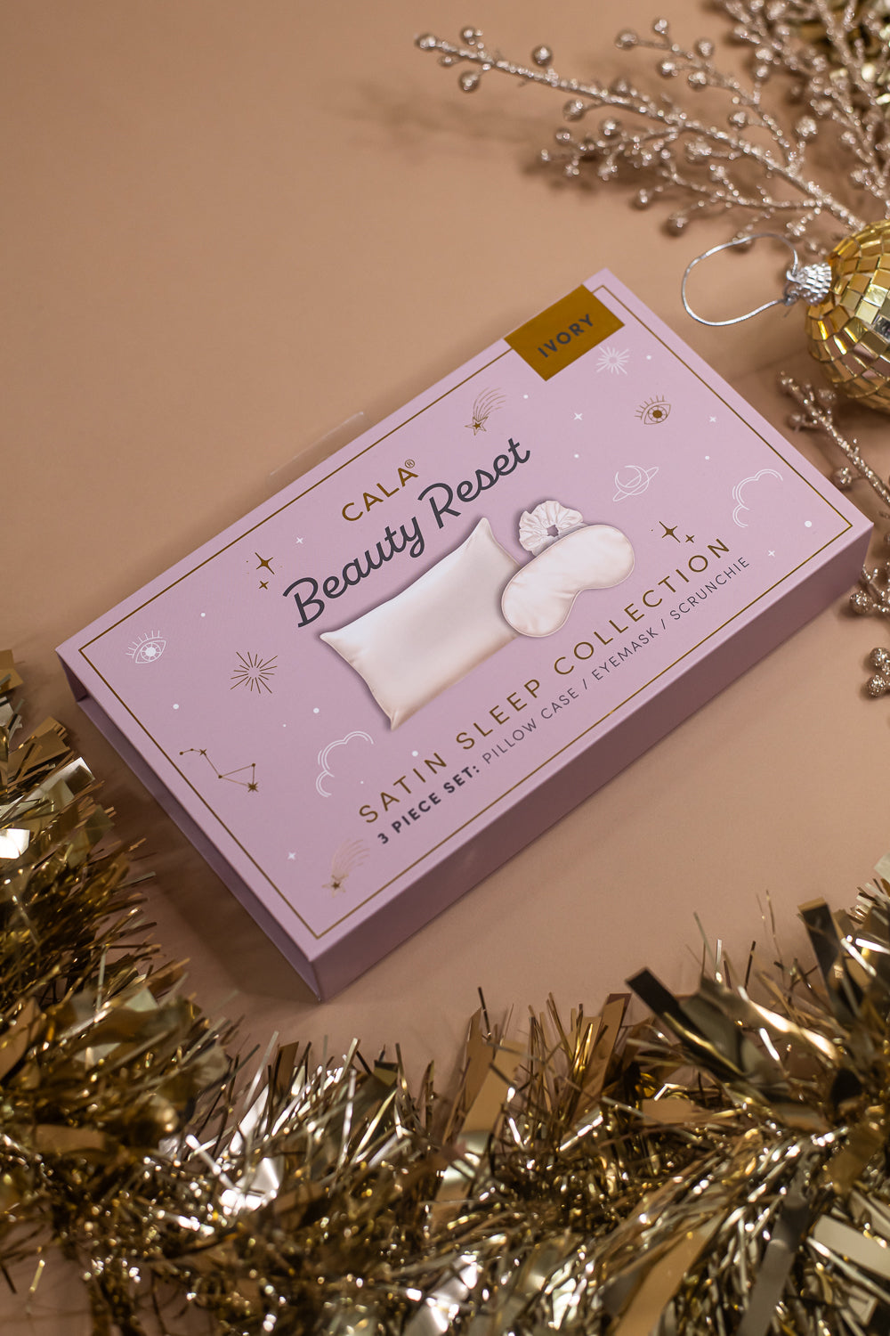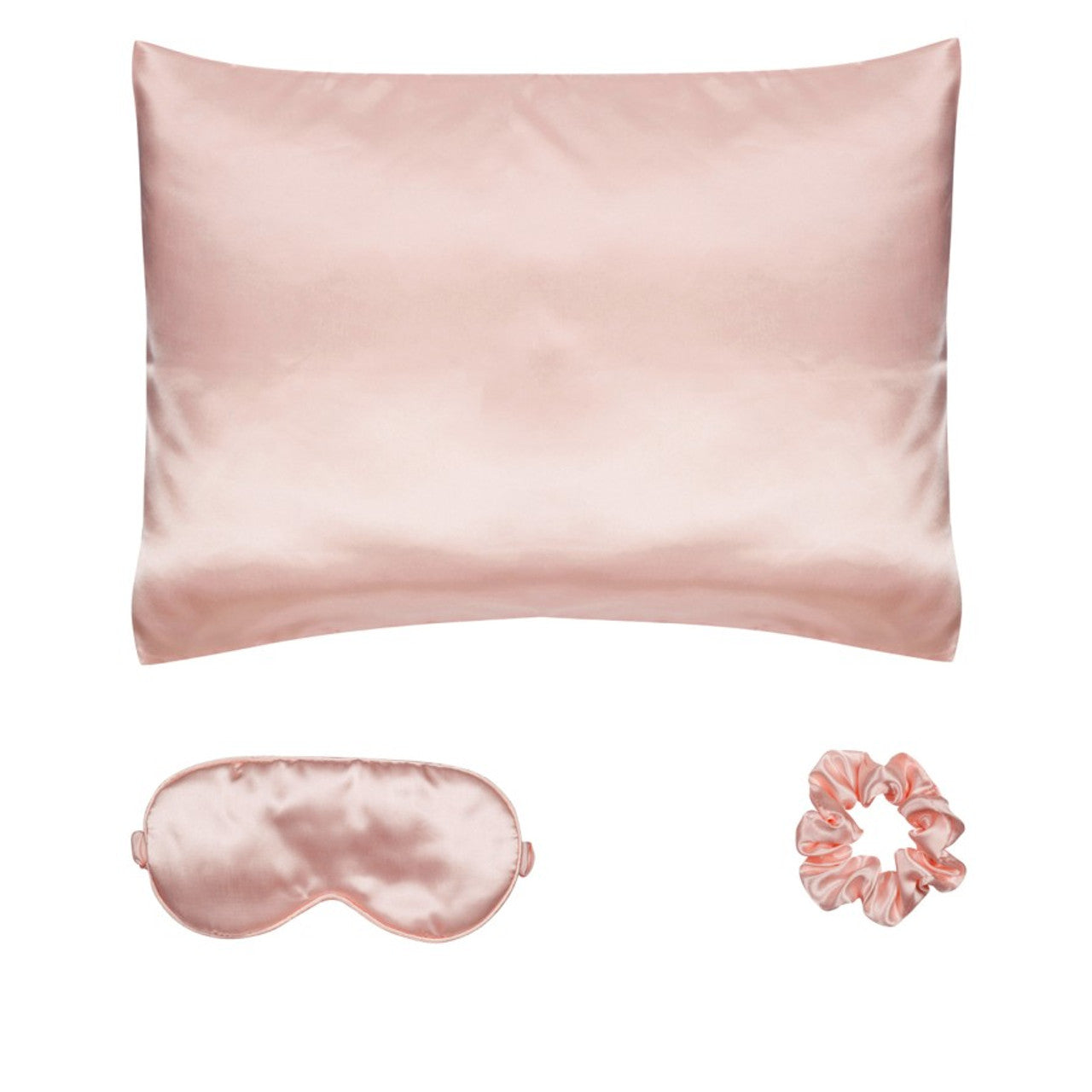 Rest in style with this beautiful and silky soft satin sleep set, complete with a sleep mask, pillowcase, and scrunchie, all made from delicate, luxurious fabric. They work together and help reduce friction, minimize hair frizz, breakage, and tangles, while also helping to retain skins moisture and lessen the appearance of fine lines.