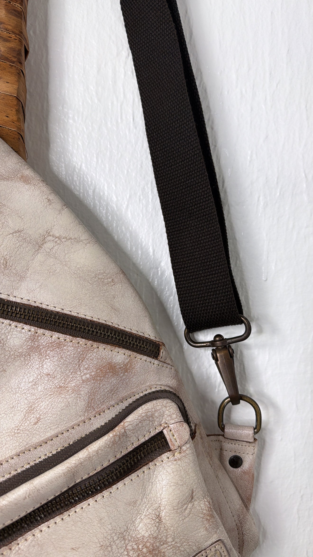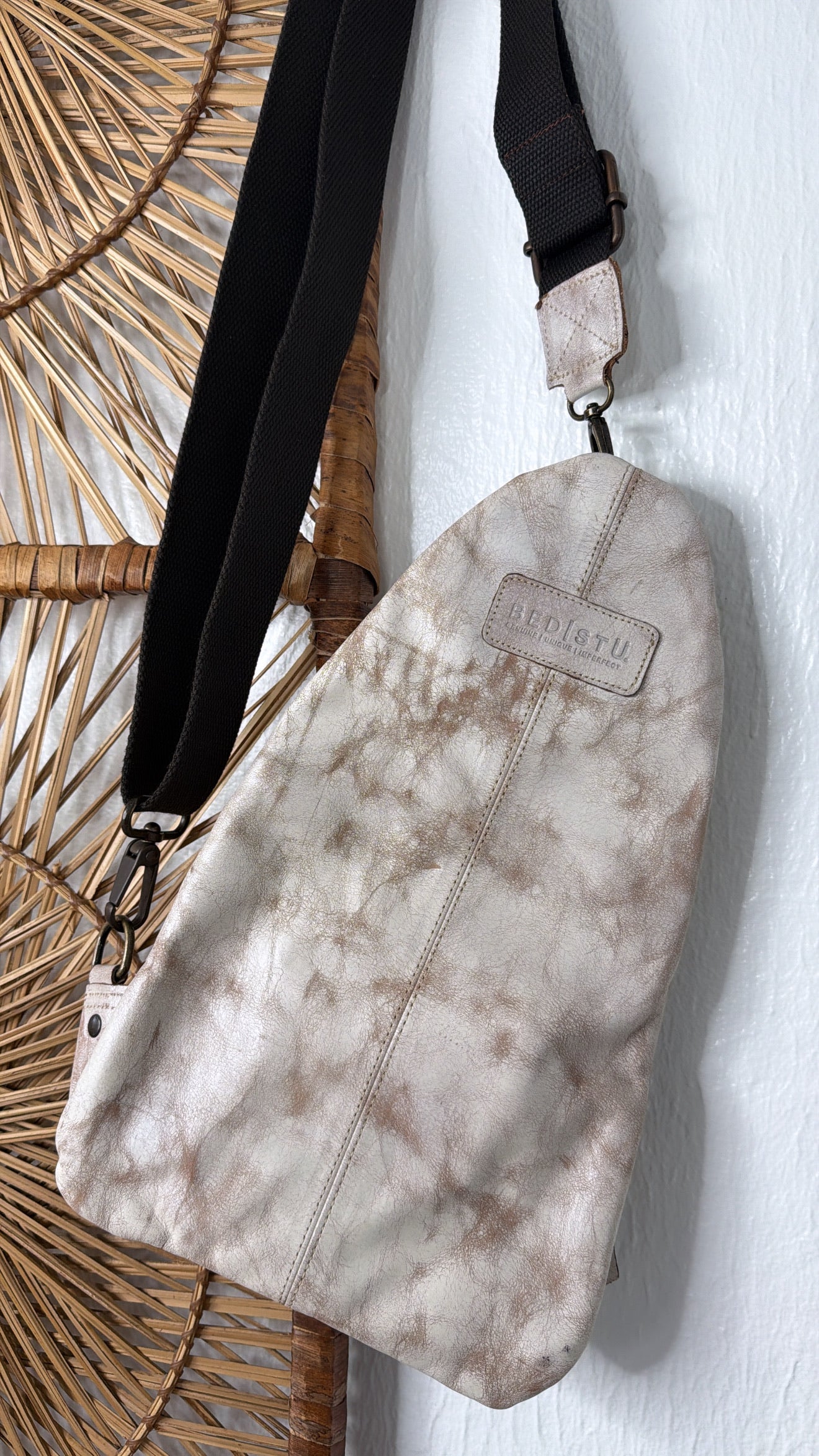 From Bed Stu, the Andie Tanned Leather Sling Backpack features: