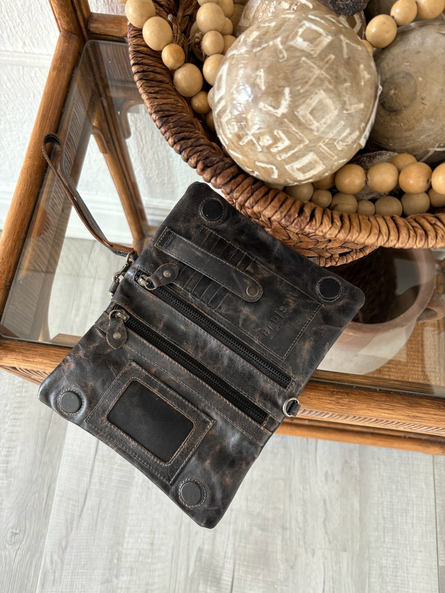 CADENCE in black rustic is a must-own for every modern woman. Wear this compact leather accessory as a wallet, cross-body, or clutch! Essential for hands-free adventures, CADENCE offers two secure inner zipper pockets, a place for ID & credit cards, and a metal magnet closure.
