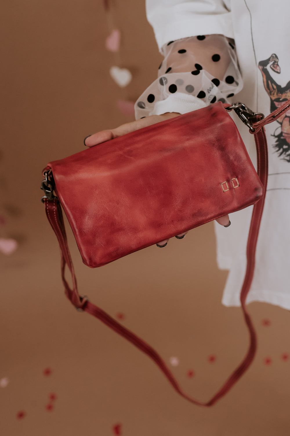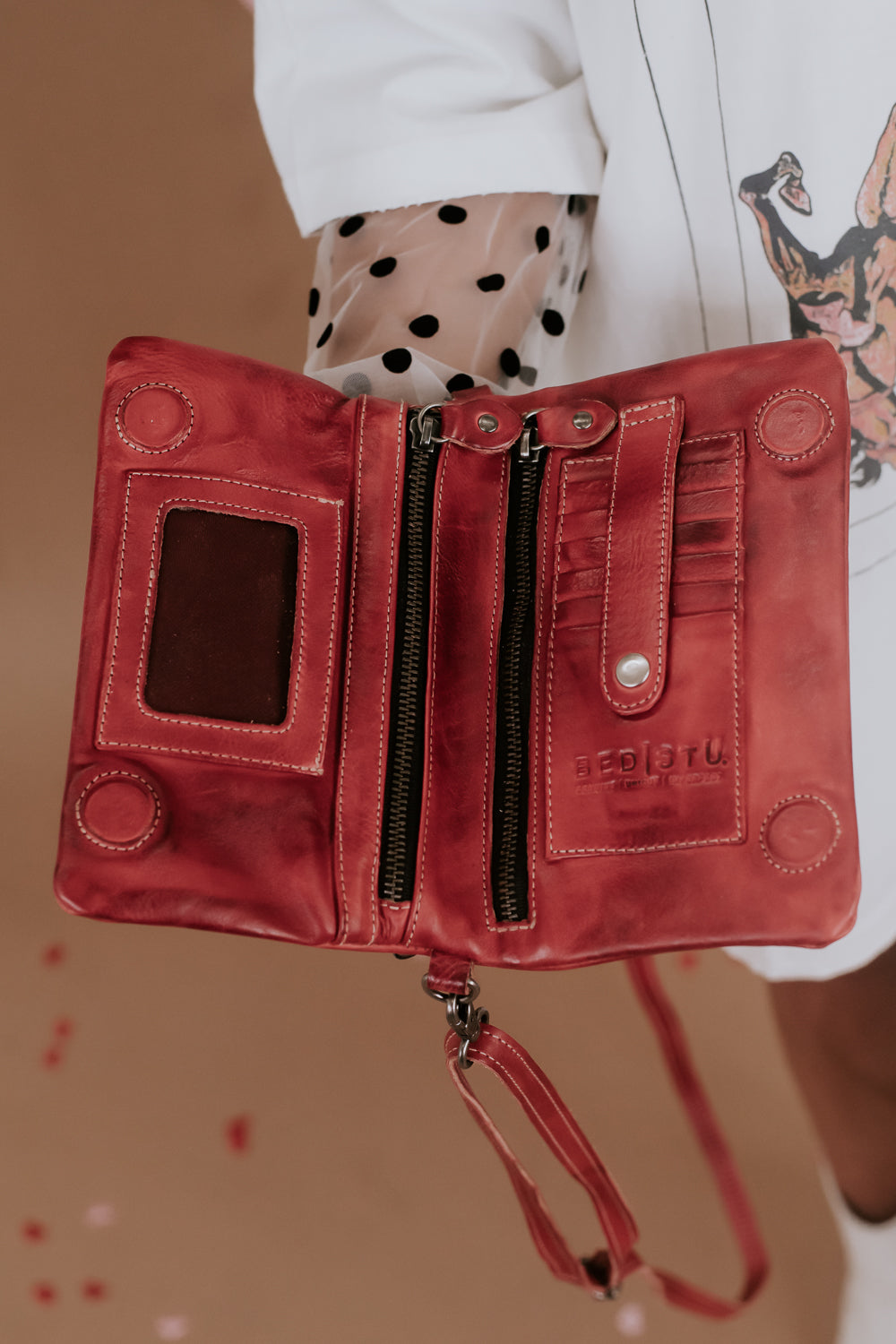 Fun meets function with CADENCE. A redleather wallet, crossbody or clutch, this little doll leaves you hands free for spontaneity. This modern essential has 2 inner zipper pockets, place for ID & credit cards, with a metal magnet closure. Compact & perfect for girl's night out.