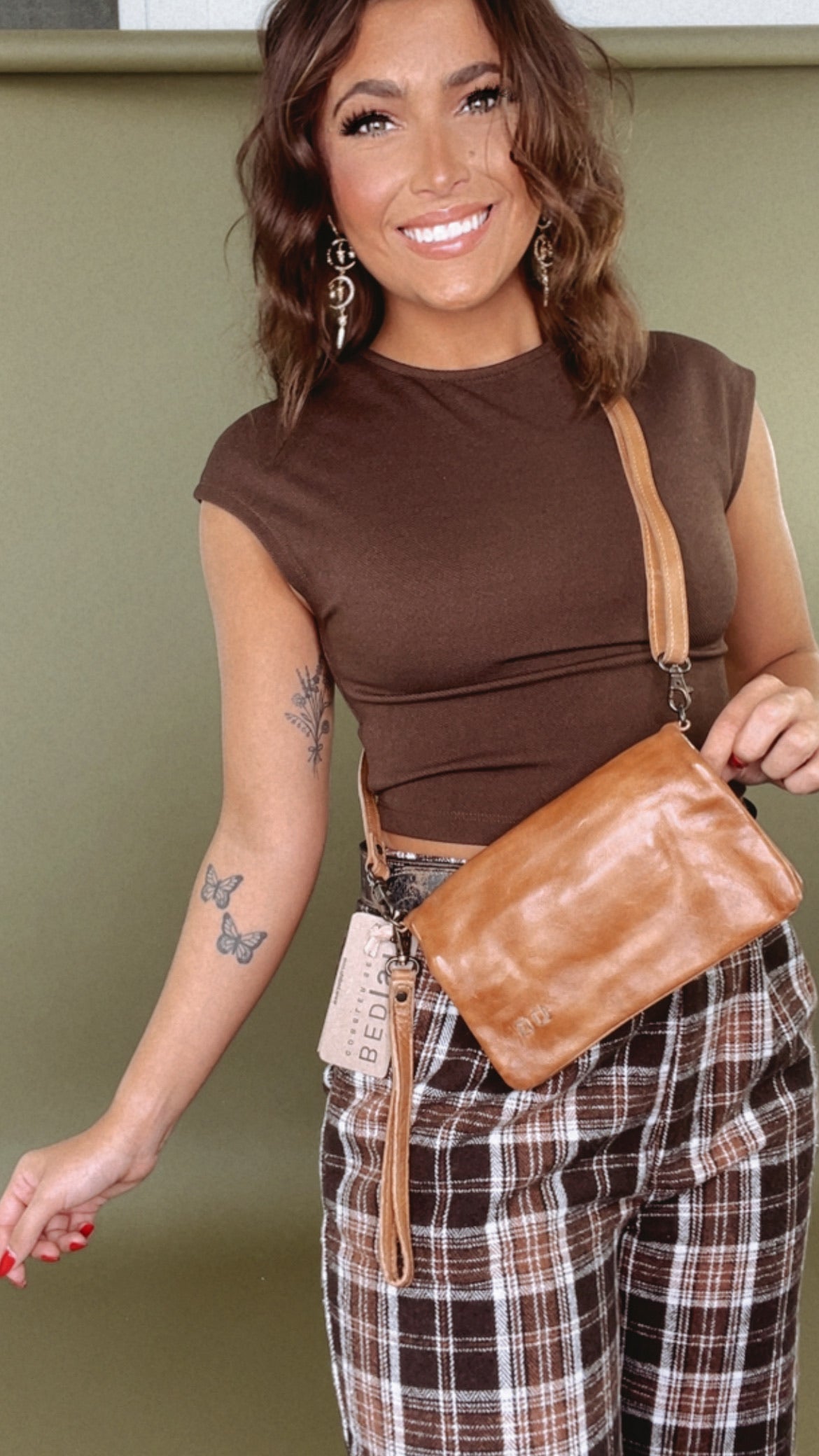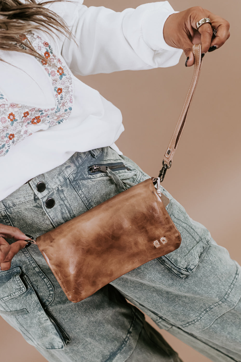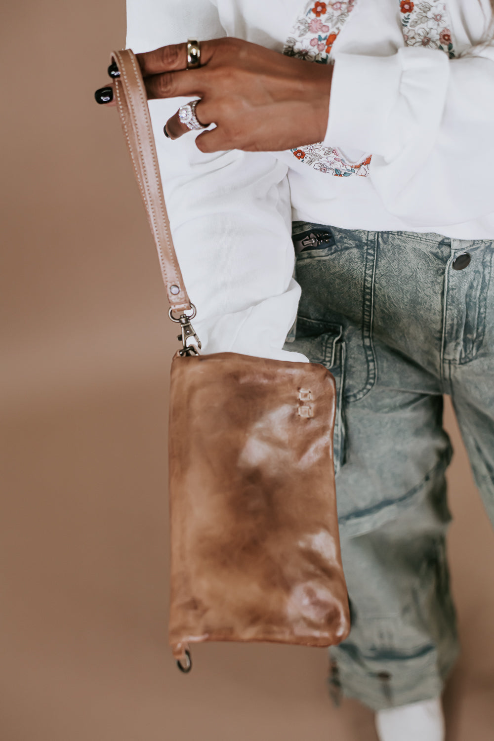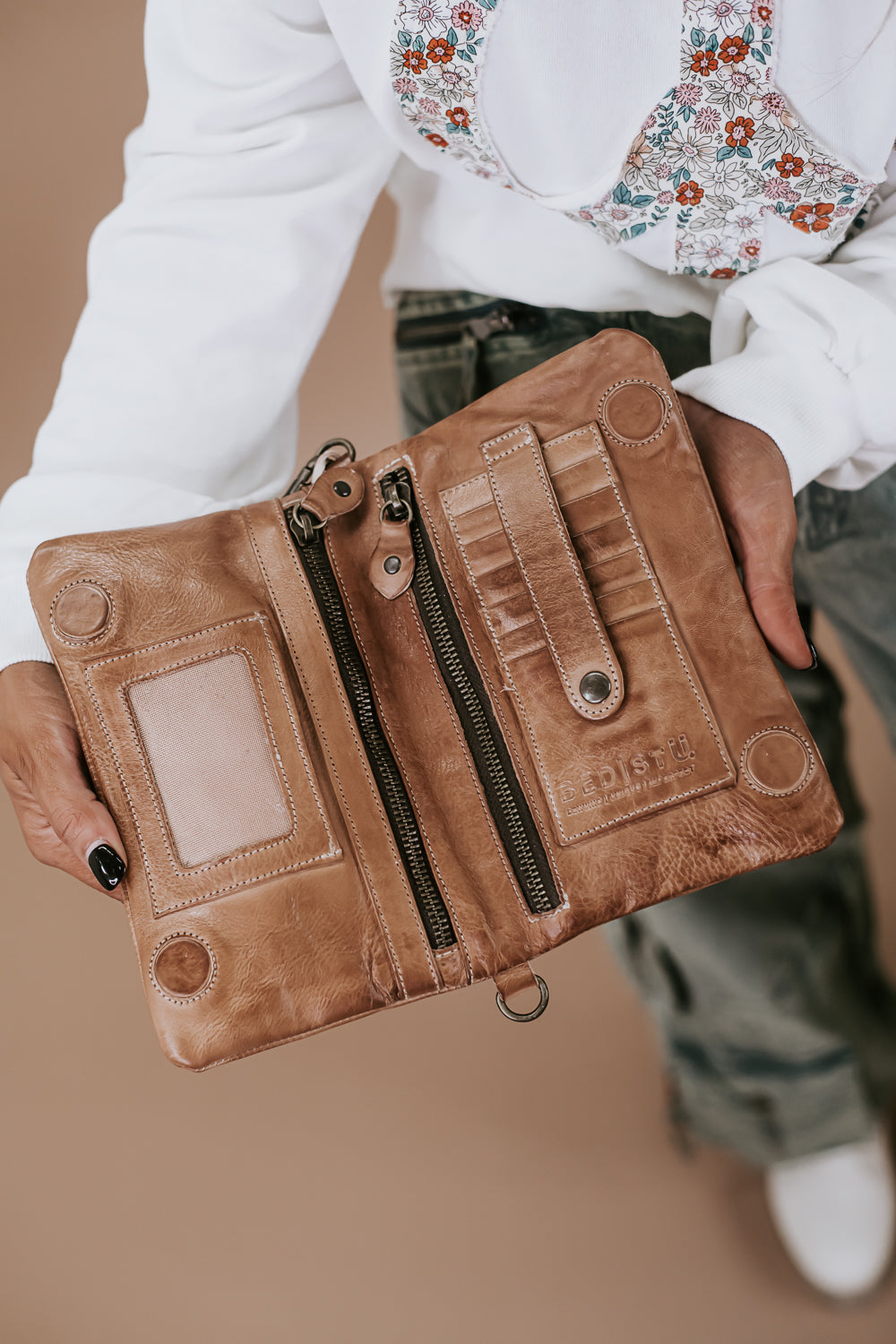 CADENCE in tan is a must-own for every modern women. Wear this compact leather accessory as a wallet, cross body or clutch! Essential for hands-free adventures, CADENCE offers 2 secure inner zipper pockets, a place for ID & credit cards and a metal magnet closure.