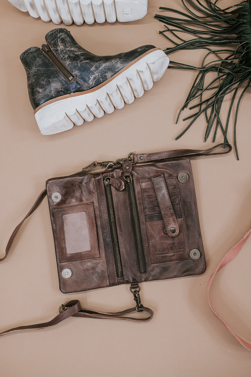Fun meets function with CADENCE. A black leather wallet, crossbody or clutch, this little doll leaves you hands free for spontaneity. This modern essential has 2 inner zipper pockets, place for ID & credit cards, with a metal magnet closure. Compact & perfect for girl's night out.