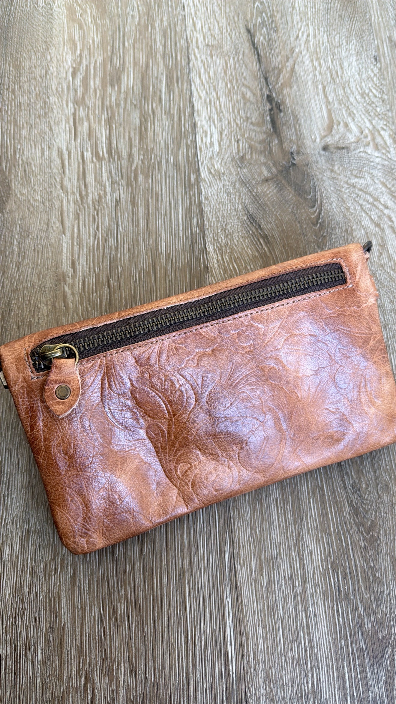 Add a touch of rustic charm to your everyday look with this Embossed Leather Crossbody Pouch. Crafted from soft, genuine leather, this piece features a beautifully detailed embossed floral design that adds texture and personality. Compact yet functional, it’s perfect for carrying your essentials while keeping your style effortlessly elevated.