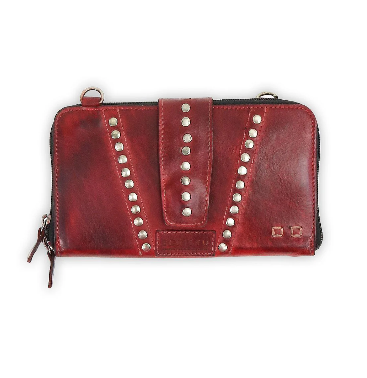 - Multi-purpose wallet and crossbody bag with stud details on front flap, adjustable and removable strap