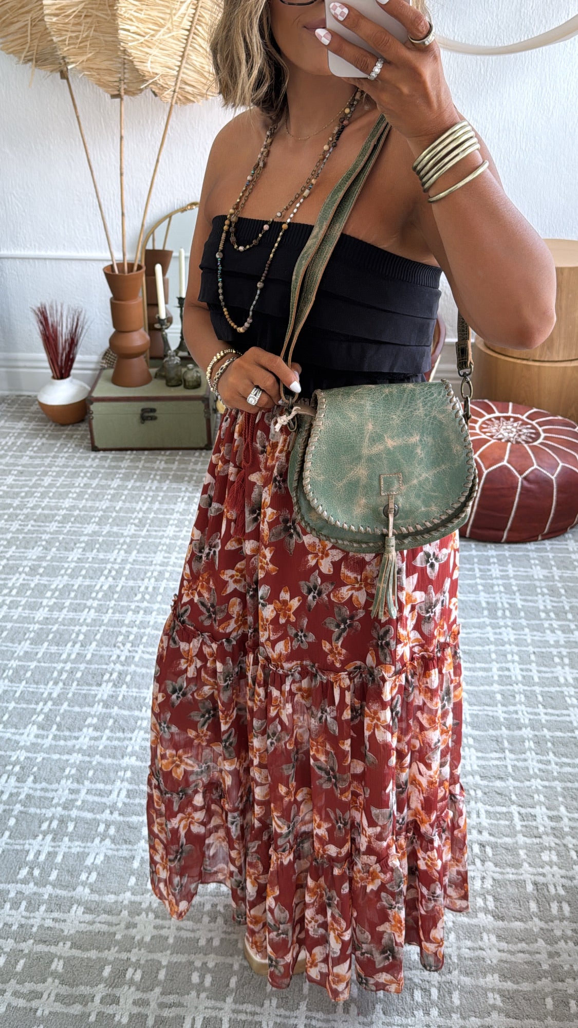 Half Moon is a crossbody purse detailed with bold woven stitching on edges and finished with a playful leather tassel. For closure, there is a metal clasp, while the interior features a zippered pocket and two slip pockets for easy organization. Complete with an adjustable strap, it's equal parts function and handcrafted charm.