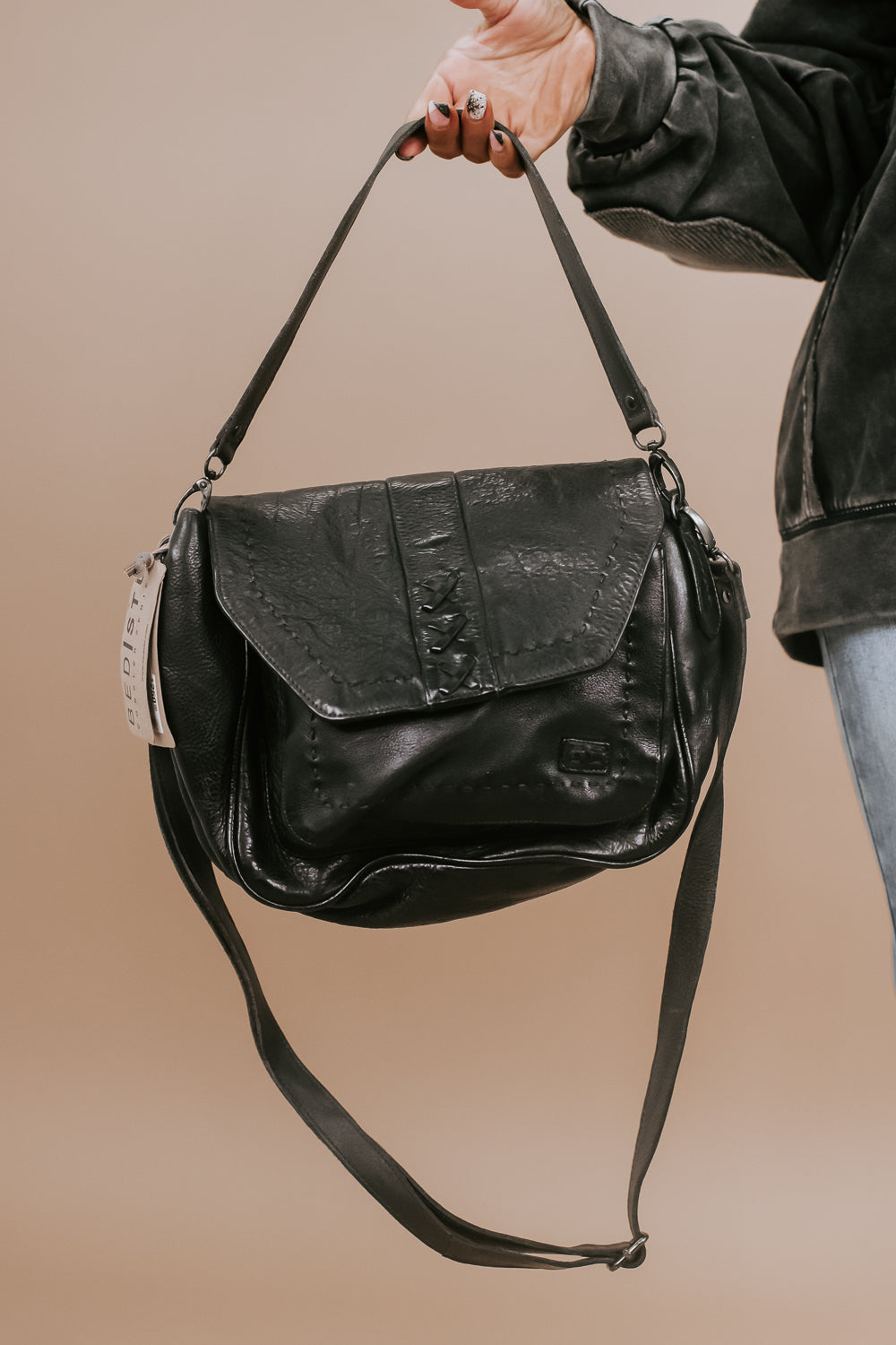 Hey there HALSEY, what you got going on? Fun new crossbody, rectangle in shape, far from being “square”. HALSEY has a front flap panel with a magnet close, X inlay details, and a deep bottom, allowing her to stand up on her own. Under the front panel is a large slip pocket, and a secure zip top closure. Traditional two slip pocket interior and one zip pocket inside. HALSEY has a removable crossbody strap too, so you could carry as a clutch as well.