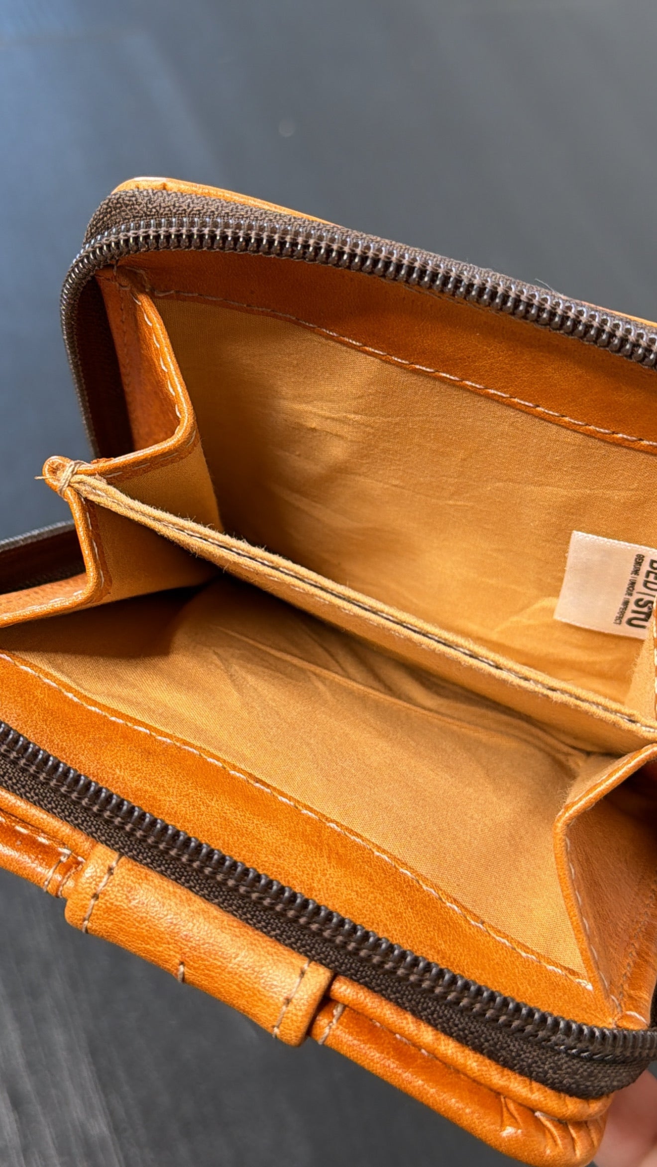 Plus is the compact leather wallet that has it all - multiple card and ID slots, a bifold for receipts and cash, and a zippered coin pocket with a divider that doubles as another card slot for extra security and storage - all in one. The bifold features a secure button closure, keeping your valuables organized and safe no matter where you're headed. This stylish leather wallet effortlessly blends modern functionality with quality materials to bring you endless versatility.
