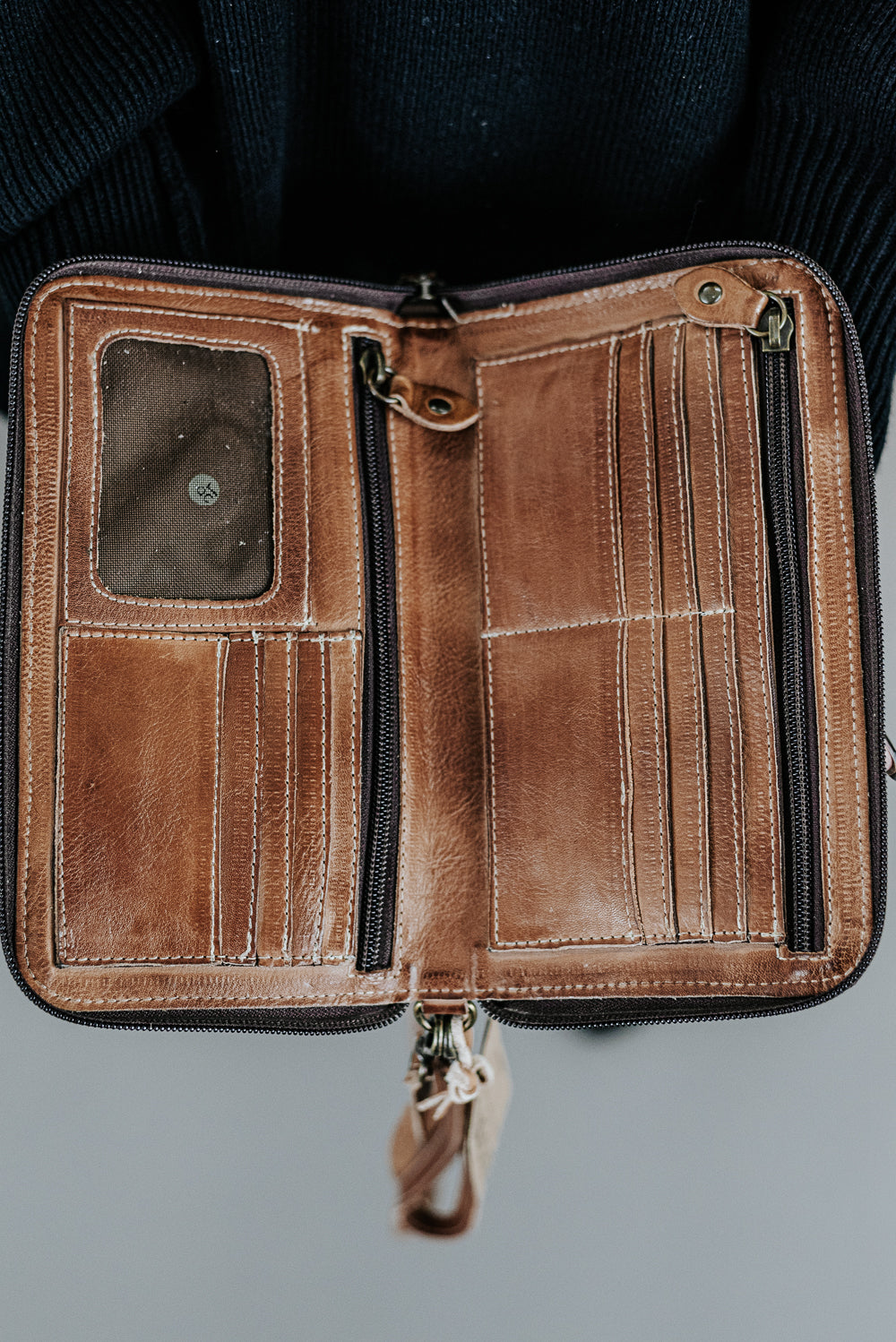 Grab TEMPLETON II and go. A three in one piece, beautifully hand applied finishes on this leather wallet/clutch/crossbody make looking good and keeping it together go hand in hand. TEMPLETON II keeps you organized effortlessly, with no headaches digging for that debit card. For all of you asking for a BED|STU wallet, we heard you.