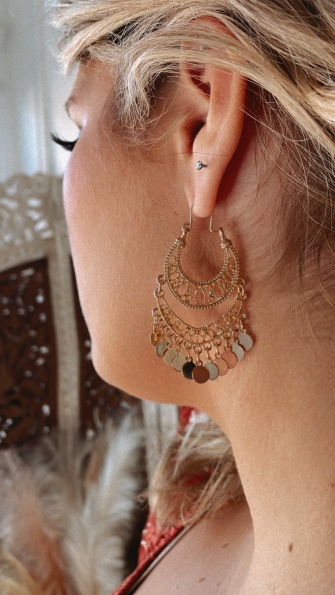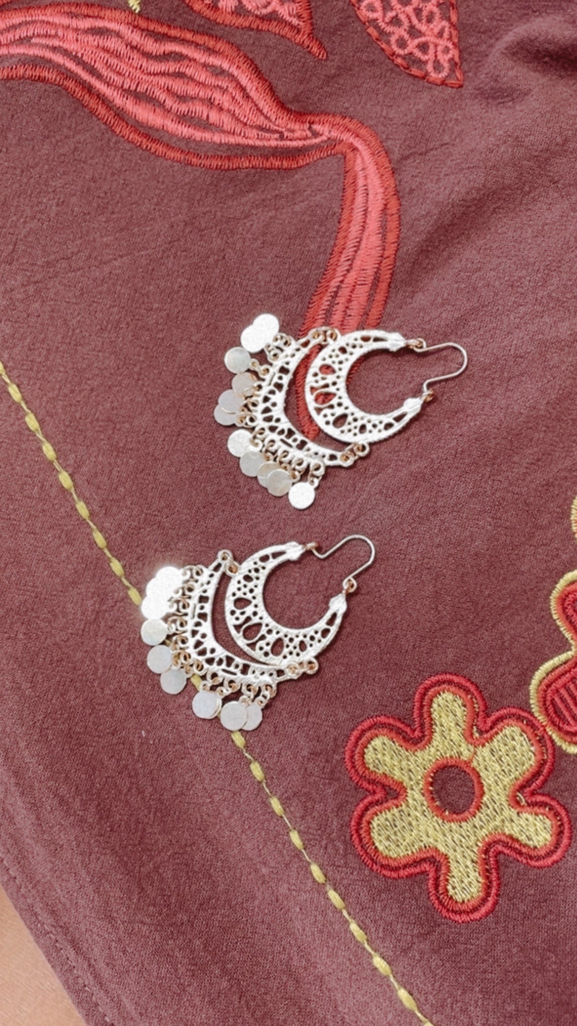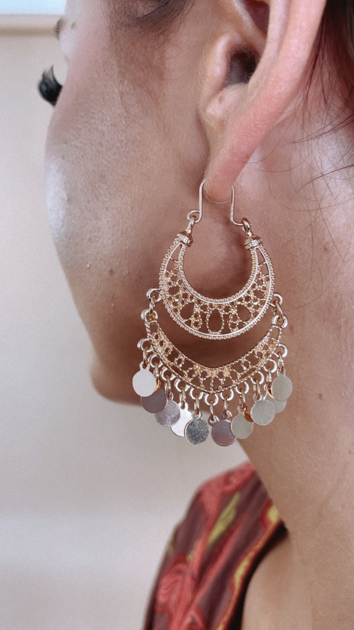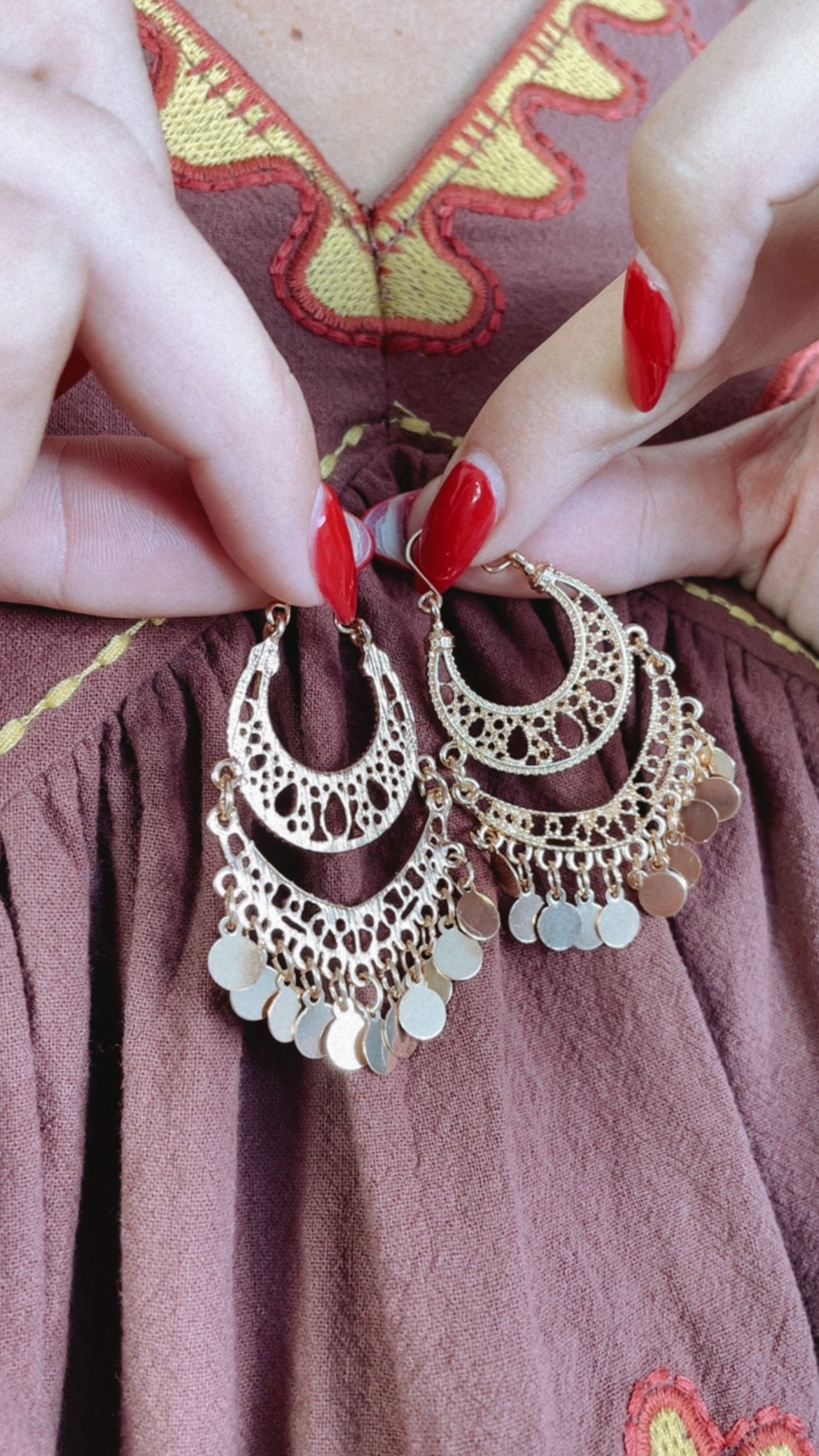 Elevate your boho style with these ethnic filigree hoops. Gold intricacy features coil dangles in a fusion of cultural allure and elegance.