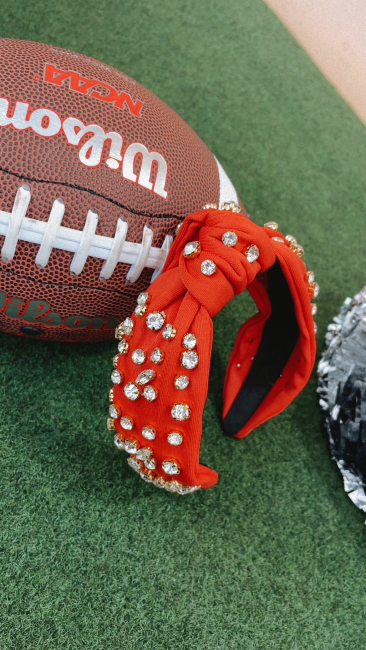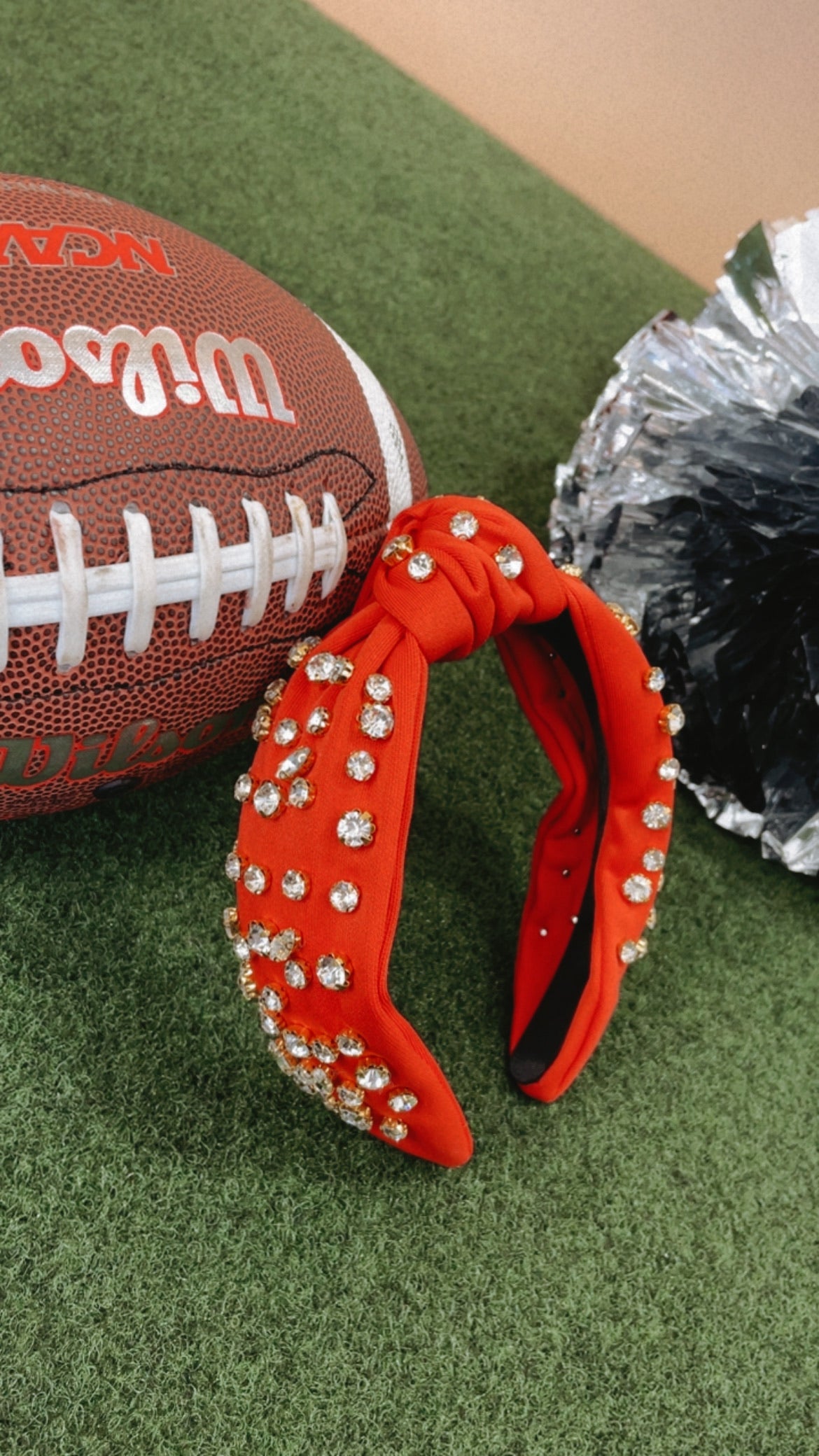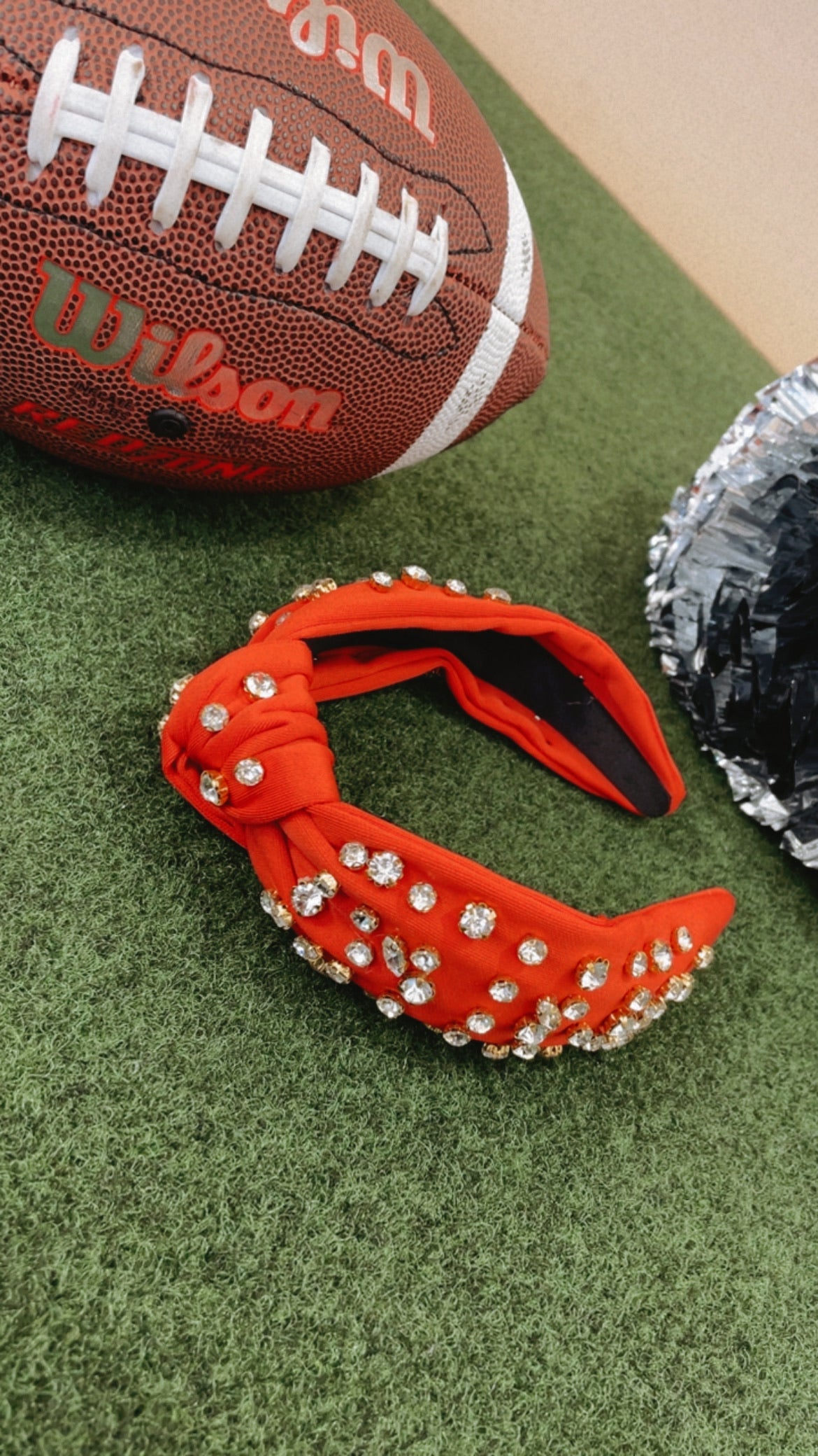 Complete your look with a touch of sparkle using the Rhinestone Headband in Orange, a dazzling accessory that adds a pop of glam to your ensemble, ideal for game days, College game day outfits, and stylish everyday wear.
