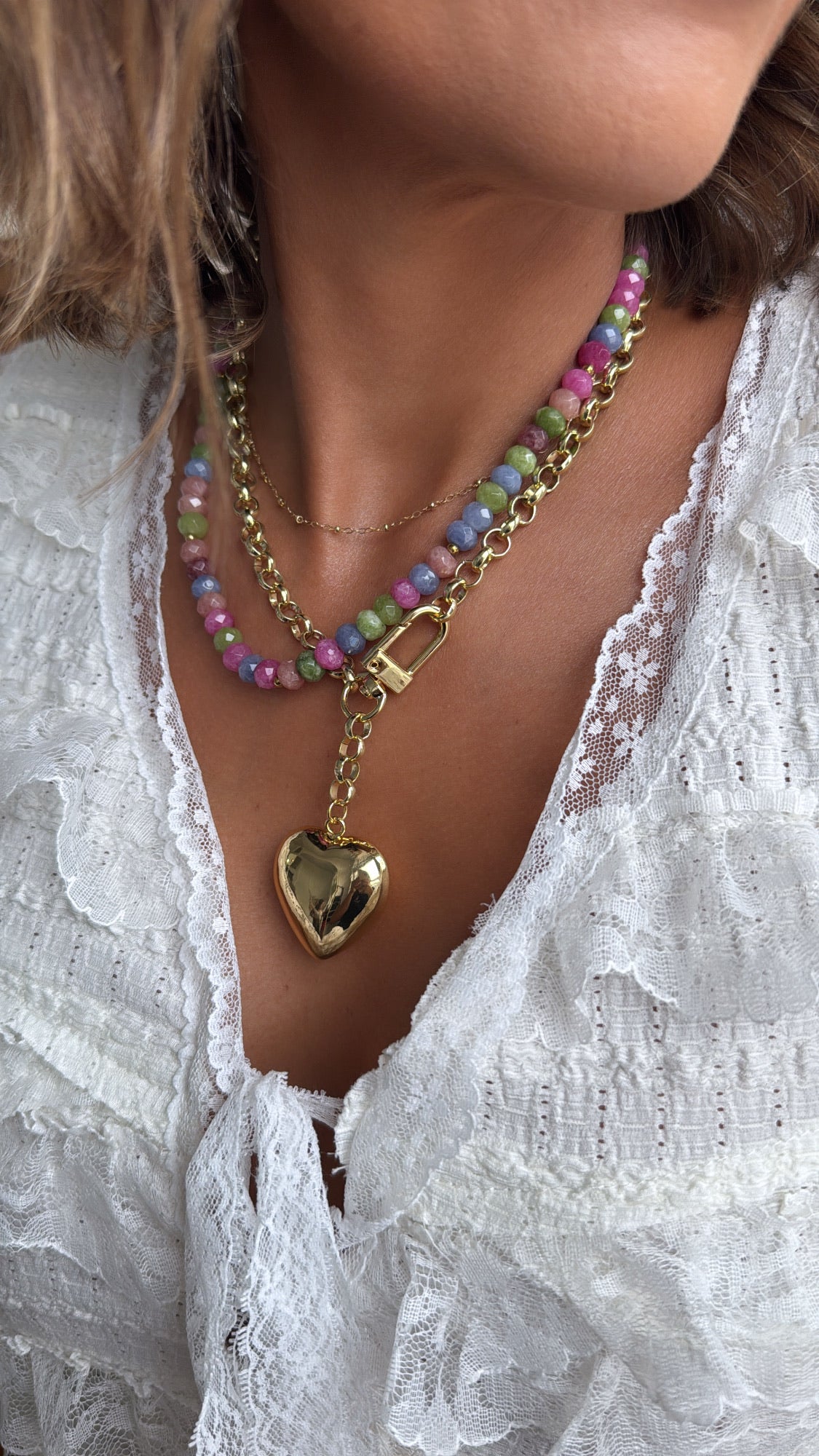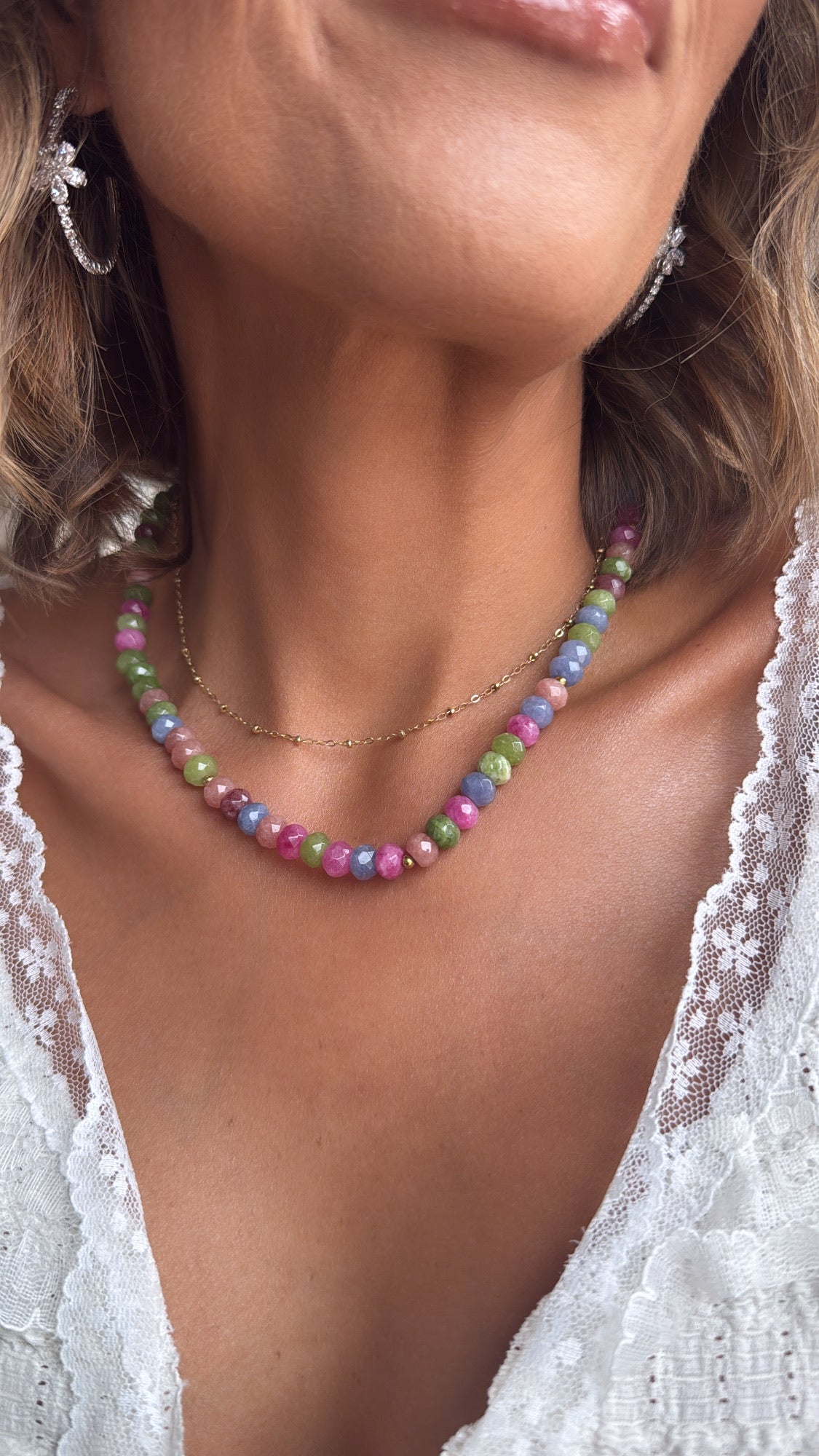 Bright, playful, and bursting with color, Garden Party is like a celebration you can wear. Featuring faceted beads in fresh greens, soft blues, rich pinks, and a touch of gold, this necklace brings a pop of joy to any outfit. Lightweight and vibrant, it's perfect for layering or stealing the show all on its own - the ultimate piece for brunch dates, weekend adventures, or simply living your most colorful life.