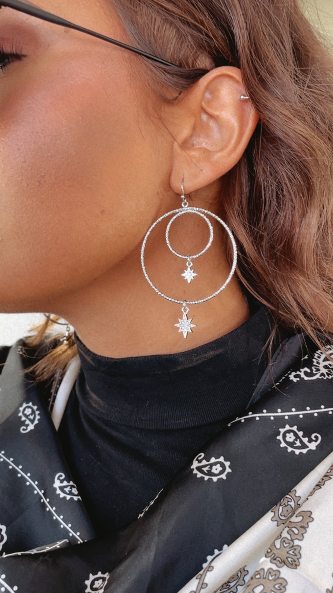 Double Circle Starburst Earring, Silver