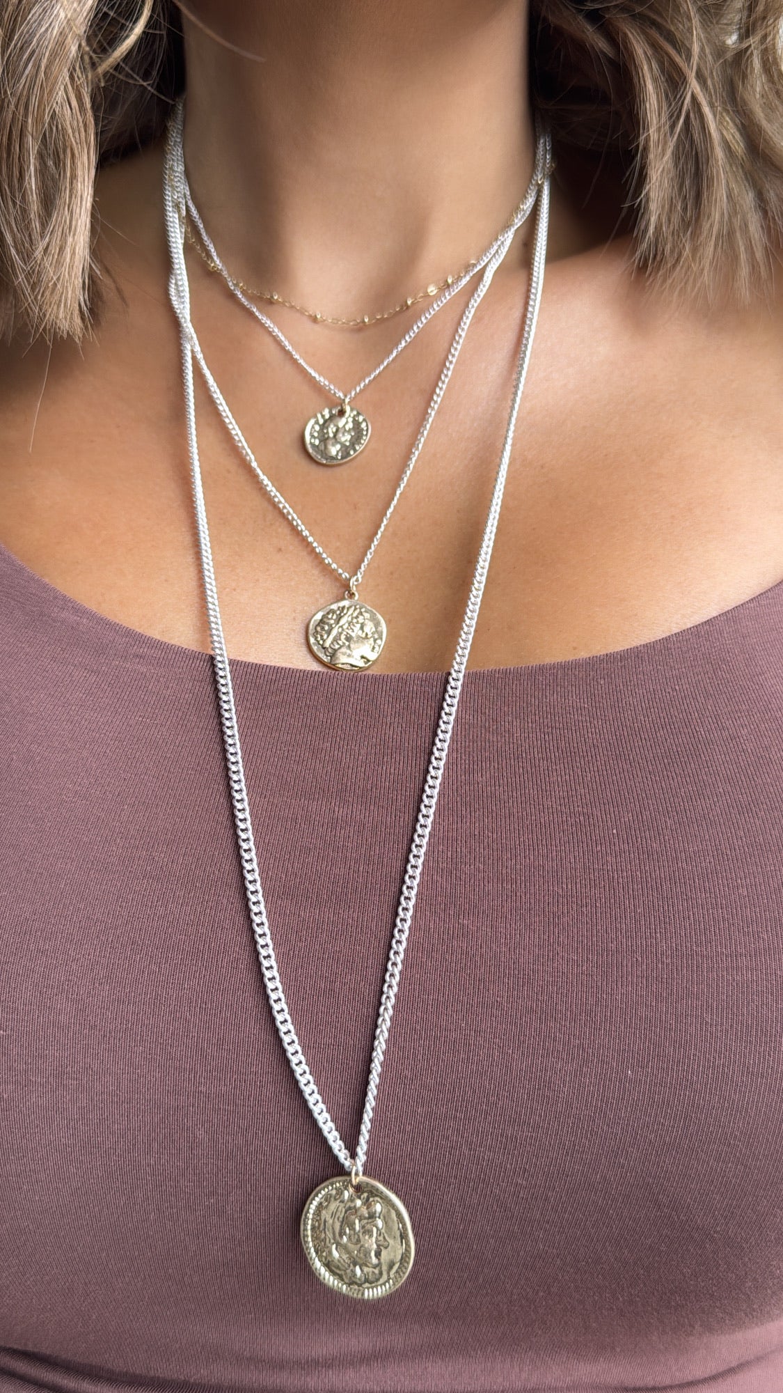 Coin Layered Necklace, Mixed Metal