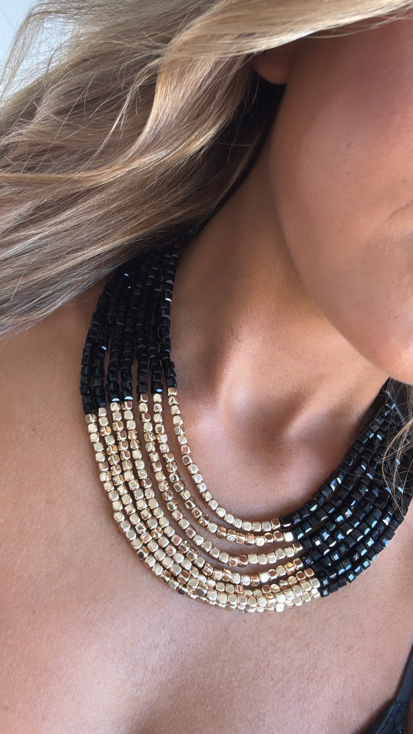 Cube Shaped Layered Necklace, Black