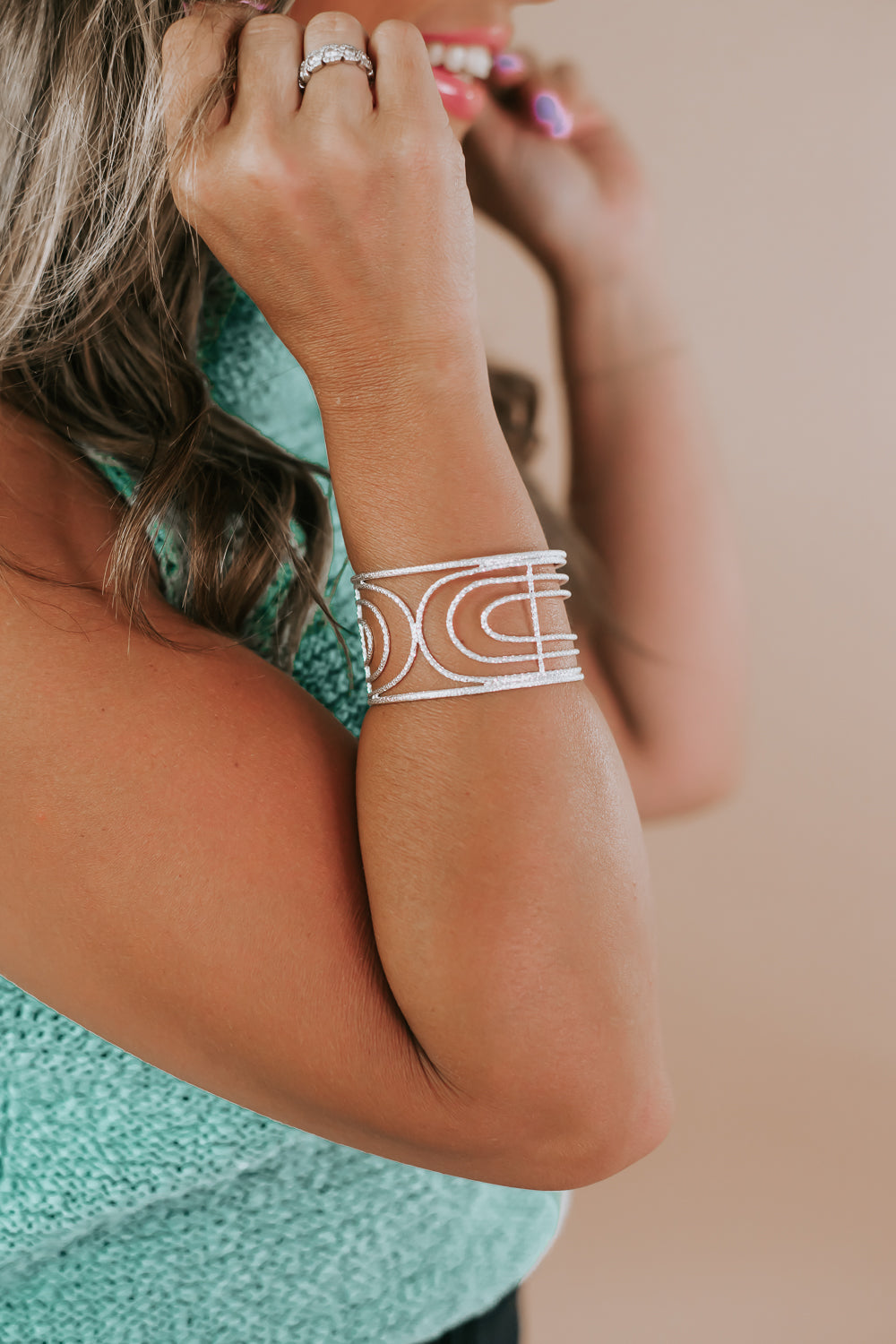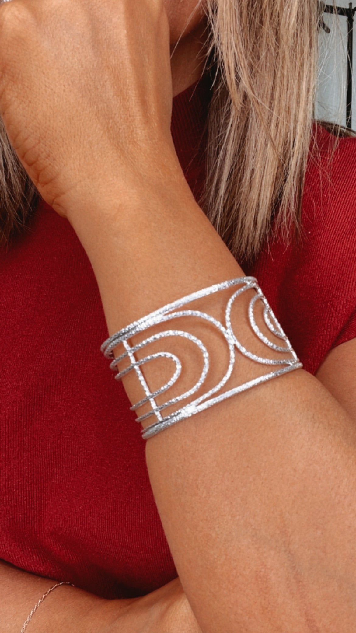 Cut Out Metal Cuff Bracelet, Silver