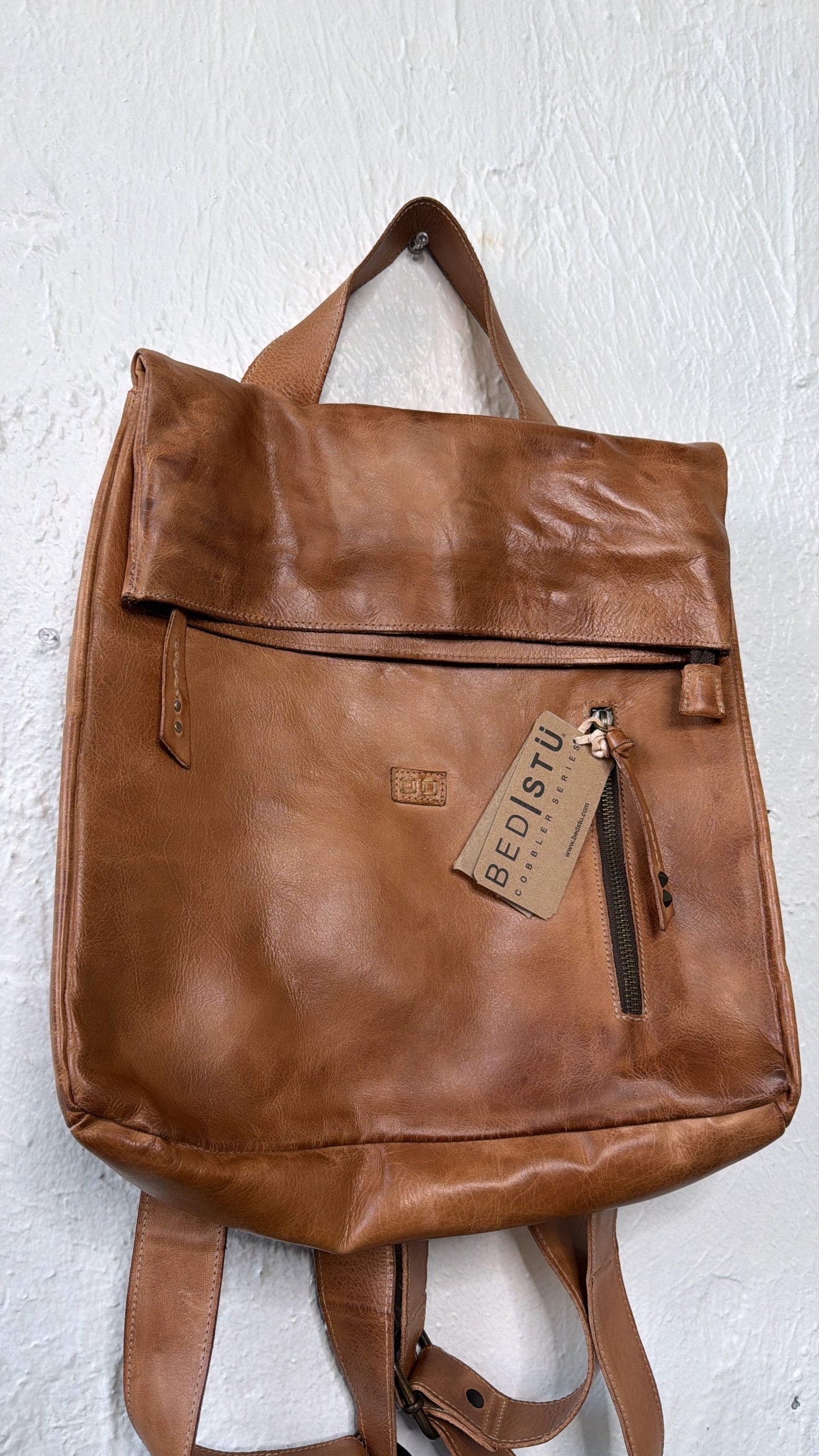 Handsome backpack for a man or woman, HOWIE is made with beautiful hand finished leather and details that keep your items secure. Featuring a large slip pocket on the face of the bag gives you the option to carry a laptop inside, and the tablet outside for quick access. Adjustable leather straps make this bag a perfect addition to anyone's wardrobe.