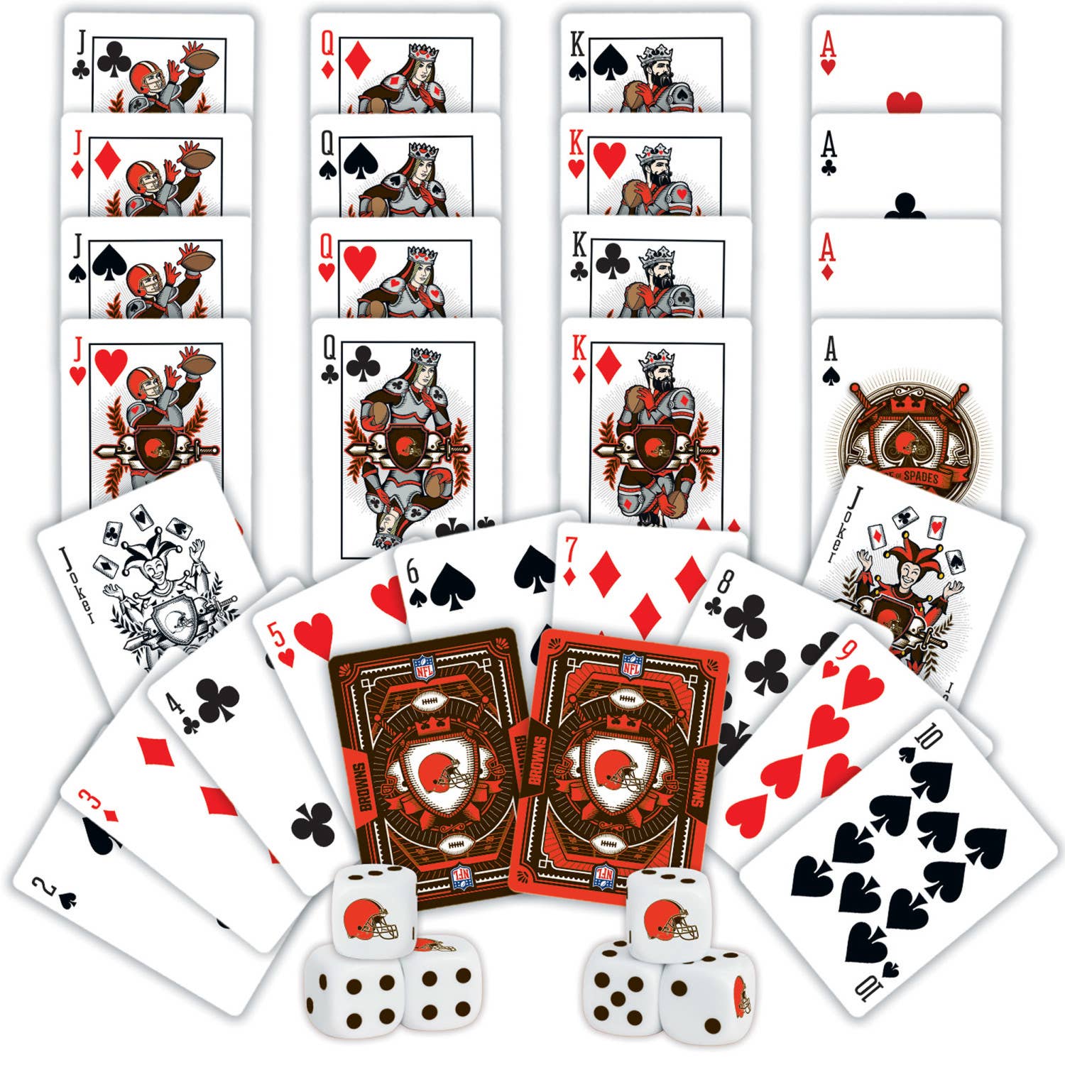 Who says you can't bring the casino to your next game night? Perfect for any fan of the Cleveland Browns. The deck features a unique team design and comes with a 6-piece 16mm D6 gaming dice set. Whether you're playing some poker or trying to beat the dealer at blackjack, these cards will help you do it in style. So roll the dice and get ready to bet big, because, with this set, you're going to win big. Go Team!