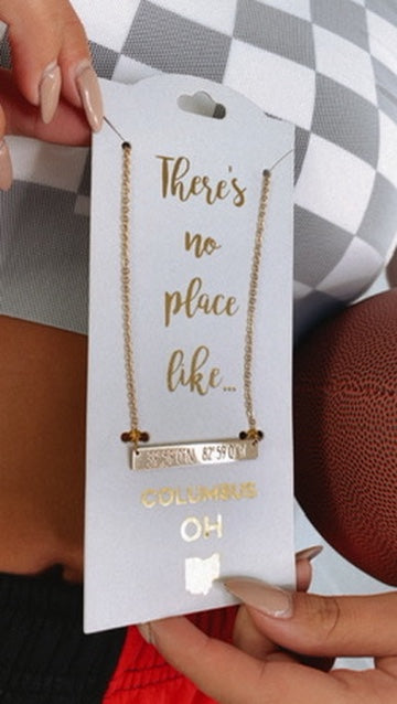 Simple and unique. The Columbus Bar Necklace features Columbus Ohio's location coordinates on a sleek gold bar design.