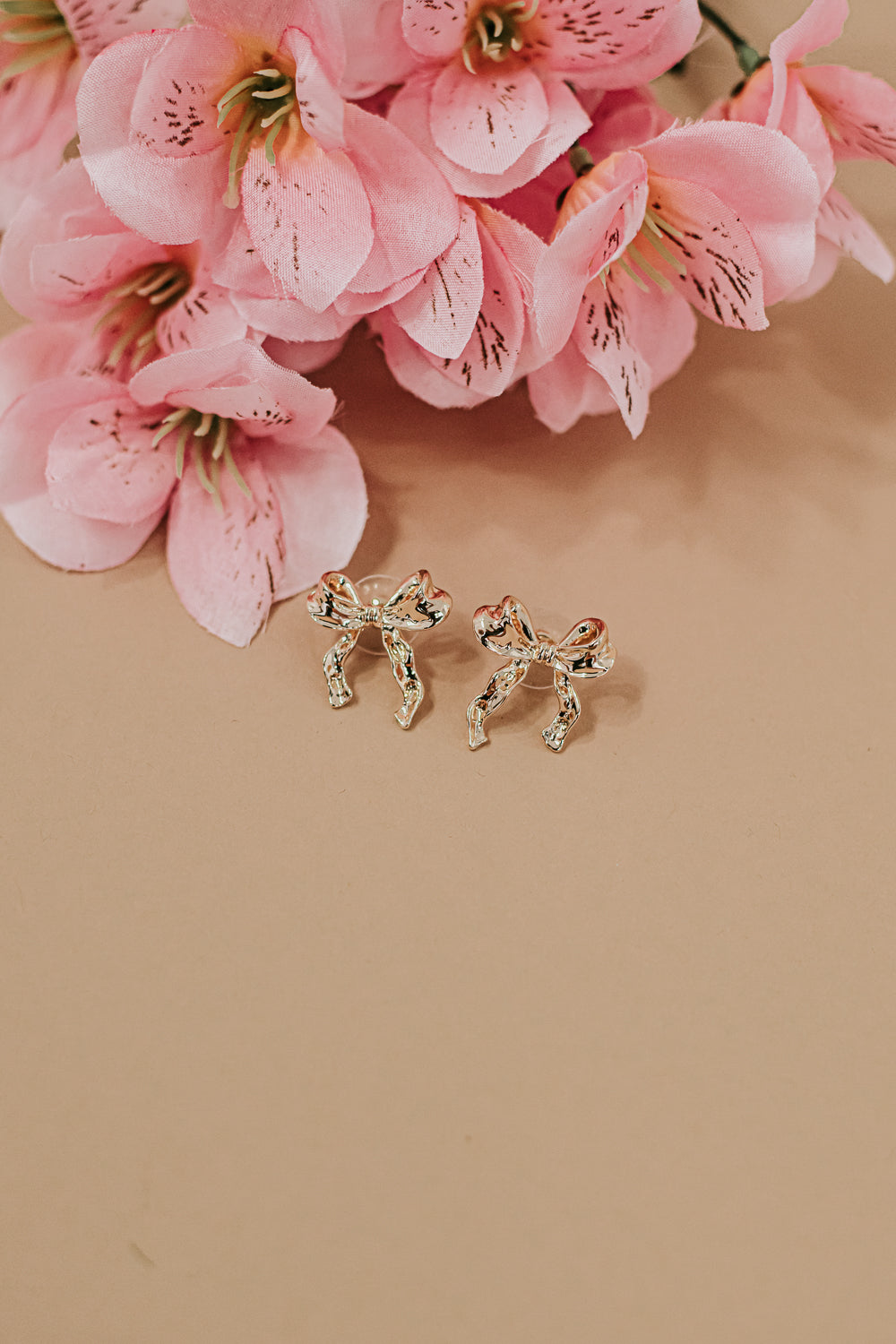 The Crumbled Metal Bow Stud Earrings - a dazzling accessory that adds a touch of sparkle and charm to any outfit.