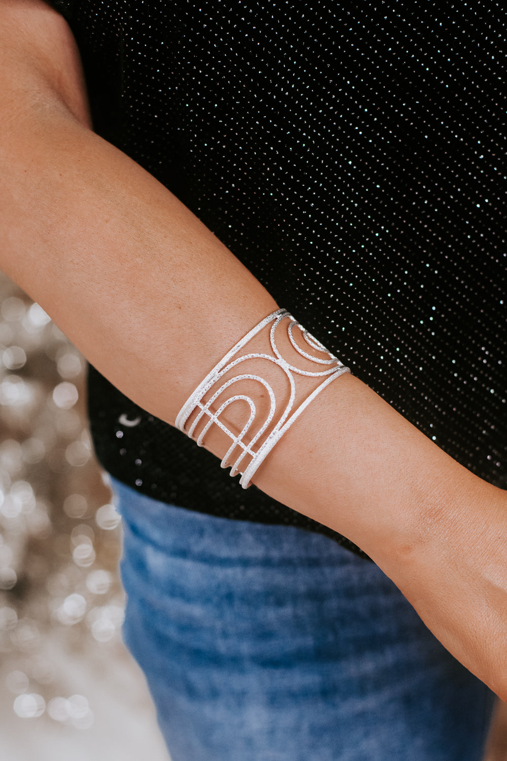 Add a touch of edgy elegance to your wrist with the Cut Out Metal Cuff Bracelet. This sleek and modern accessory features captivating cut out details, making it a stylish piece that effortlessly elevates any outfit.